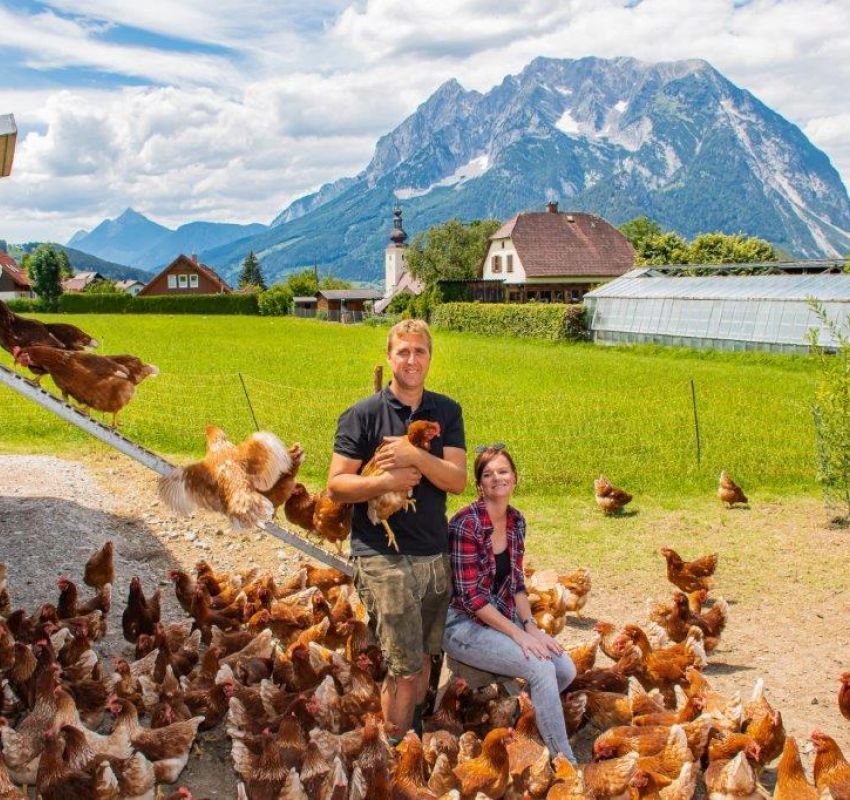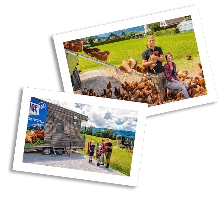 Seit Juli 2020 betreiben wir, Martin, Alex, Leo & Paul Gabriel in der Pichlarnerstraße 141 in Irdning mobile Hühnerställe. Mit Beginn des Jahres 2022 mit ca. 600 Hühnern. Zusätzlich bieten wir in unserem Hofladen regionale Produkte zur Selbstbedienung – und das 24/7.