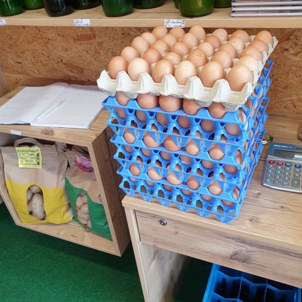 Neben den Wiesen-Freilandeiern aus eigener Produktion bieten wir in unserem Hofladen noch eine breite Palette an regionalen Produkten an. Die Kooperation mit zahlreichen regionalen Landwirten ermöglicht es uns, unseren KundInnen viele Spezialitäten anzubieten. Von Wurstprodukten aus Eigenproduktion über Erdäpfel, Obstsäfte, Honig, Nudeln mit unseren eigenen Eiern, Äpfel, Bauernbrot (dienstags und freitags) und steirischem Kernöl bis hin zu zahlreichen Milchprodukten wie Joghurt, Molke, Frischkäse und Topfen ist alles in den Regalen zu finden. Die Zusammenarbeit mit den regionalen Landwirten und die Qualität der Produkte ist spitzenmäßig. Die Region hat so viel Gutes zu bieten, wir wollen es unseren KundInnen anbieten!